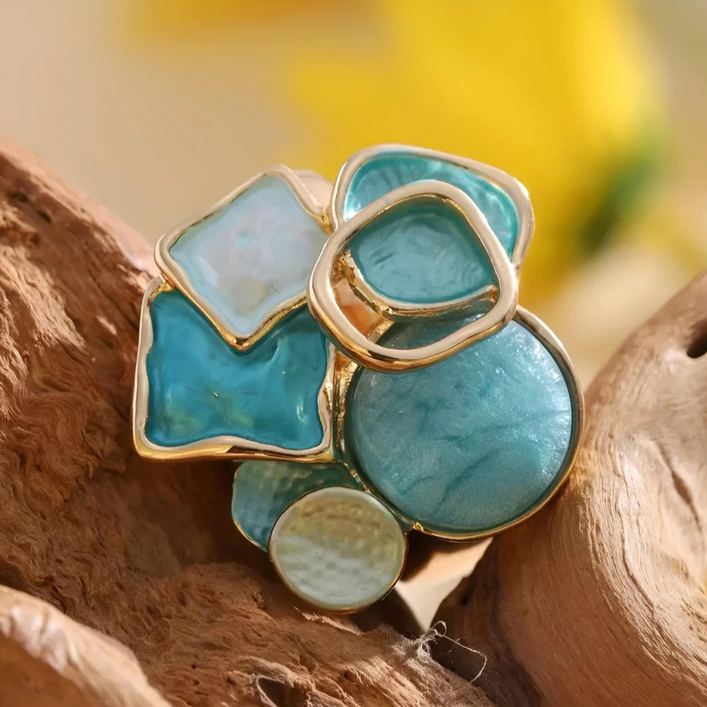 Anillo Mujer Diseño Bohemio Abstracto Esmaltado