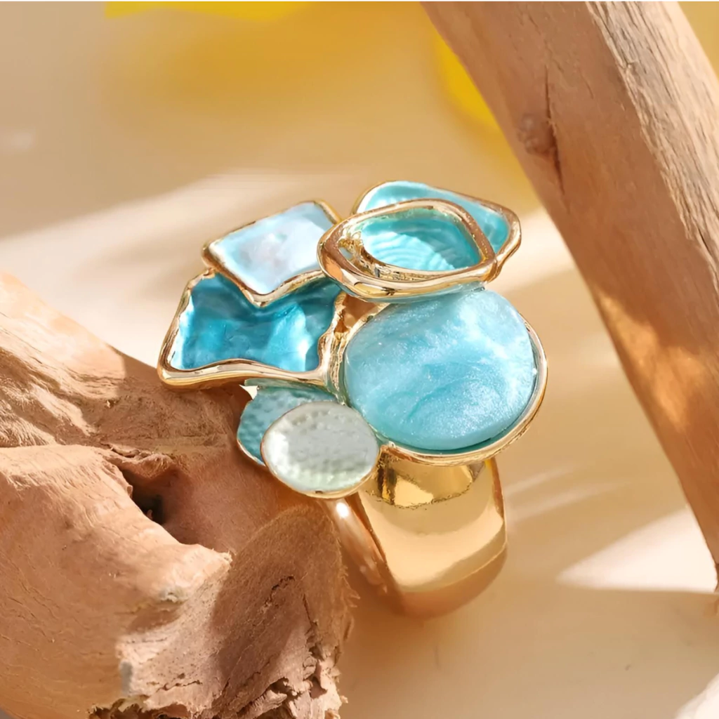 El accesorio perfecto para realzar tu estilo único! Este anillo combina un diseño bohemio con detalles abstractos esmaltados, otorgando un toque artístico y moderno a cualquier look.