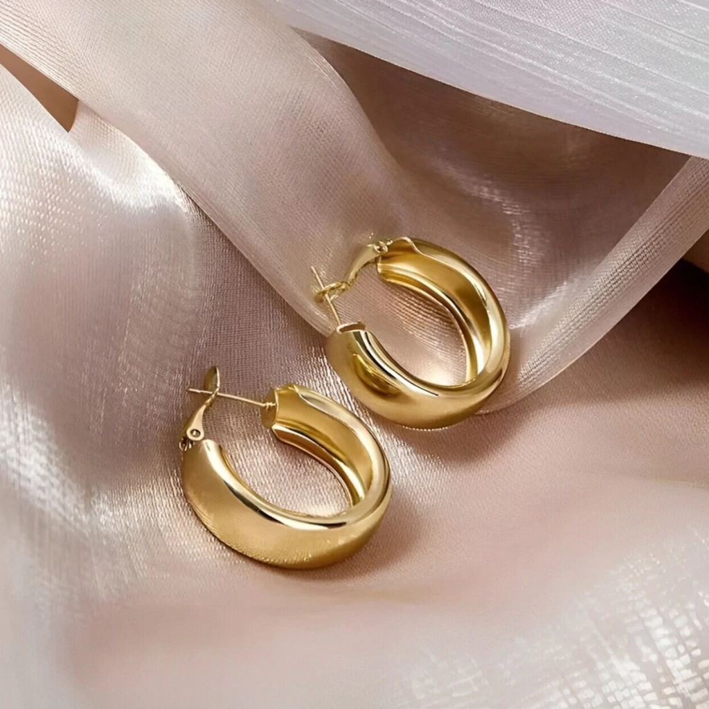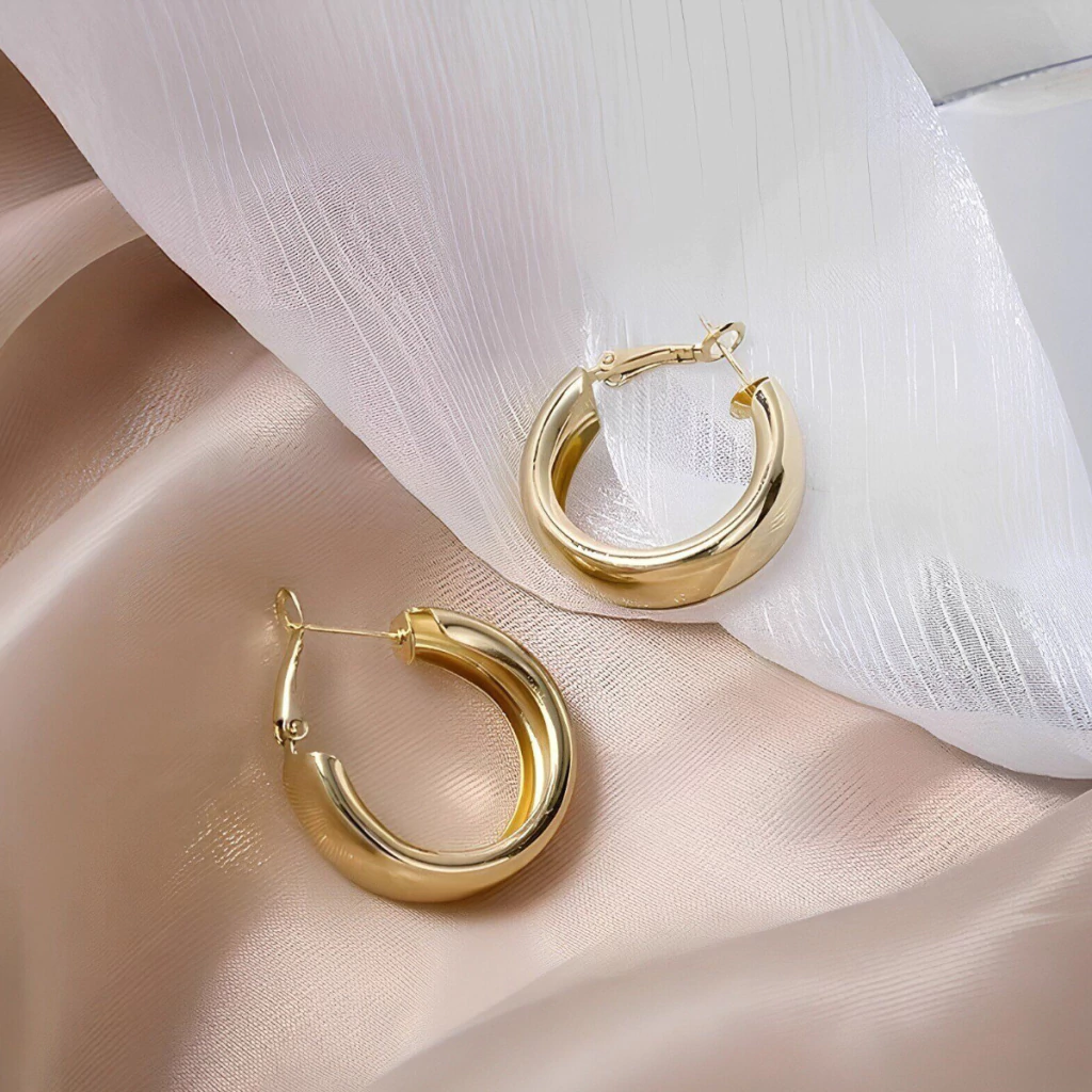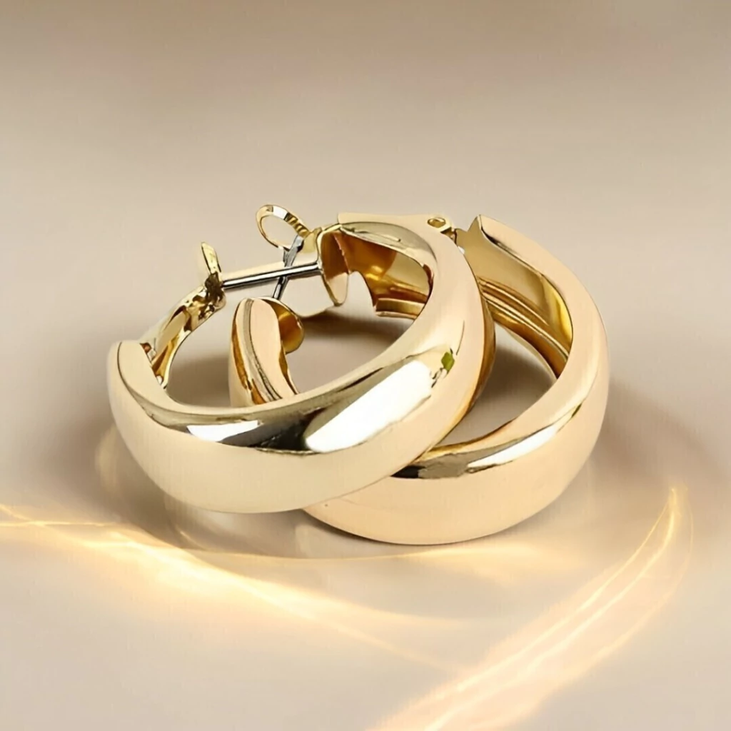 Estos aros de argolla dorada con un diseño clásico y elegante son un básico que no puede faltar en tu colección de accesorios.