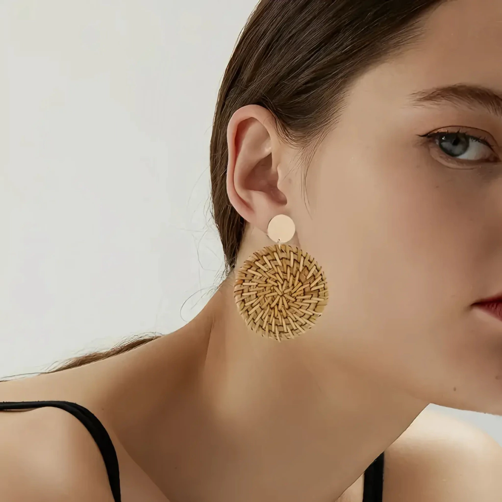 Aros Boho para Mujer Redondos Tejidos con Broche Dorado