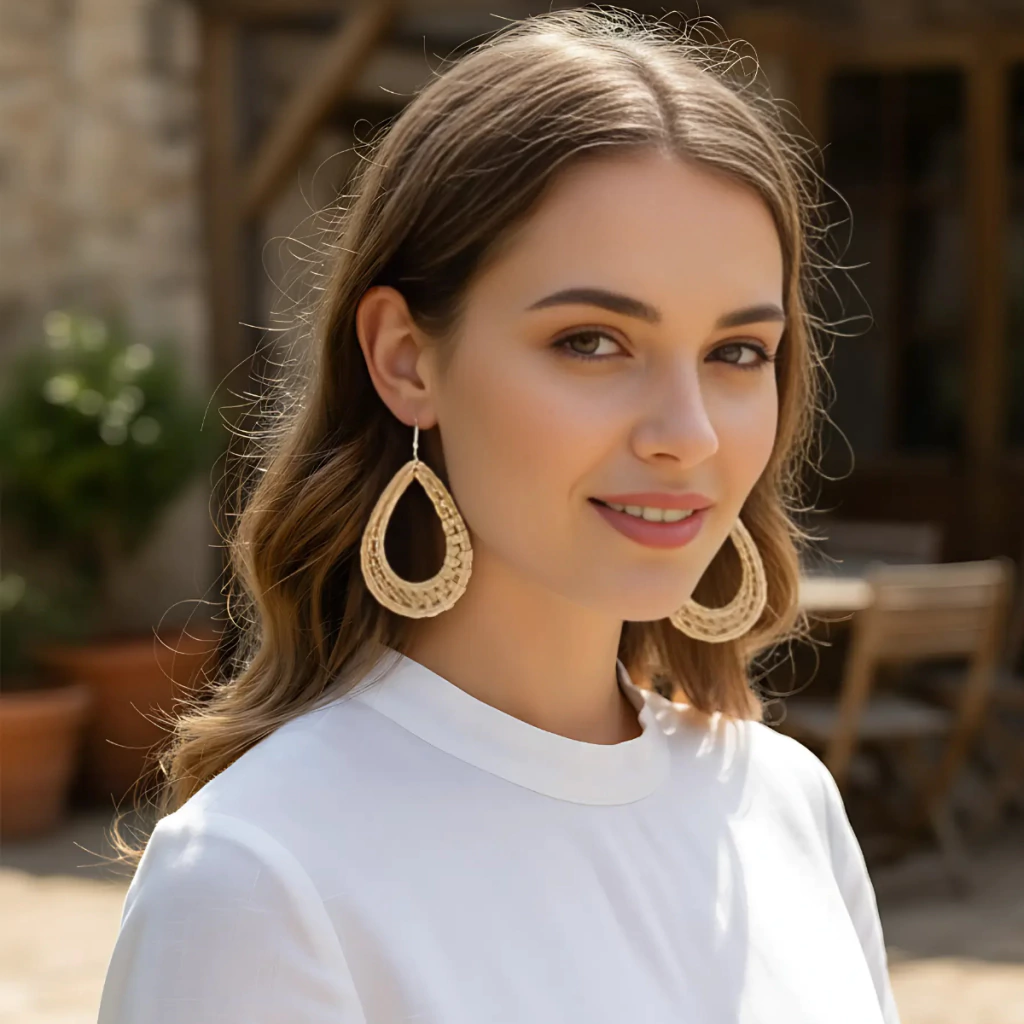 Aros Bohos de Ratán Artesanales Tejidos en Forma de Gota
