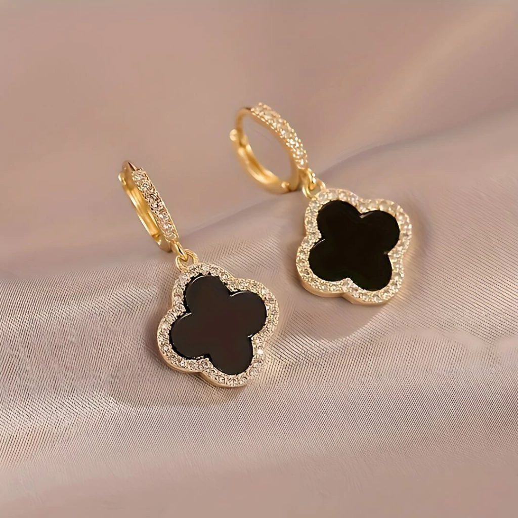 Aros Colgantes Trébol De La Suerte con Circonitas y Baño de Oro