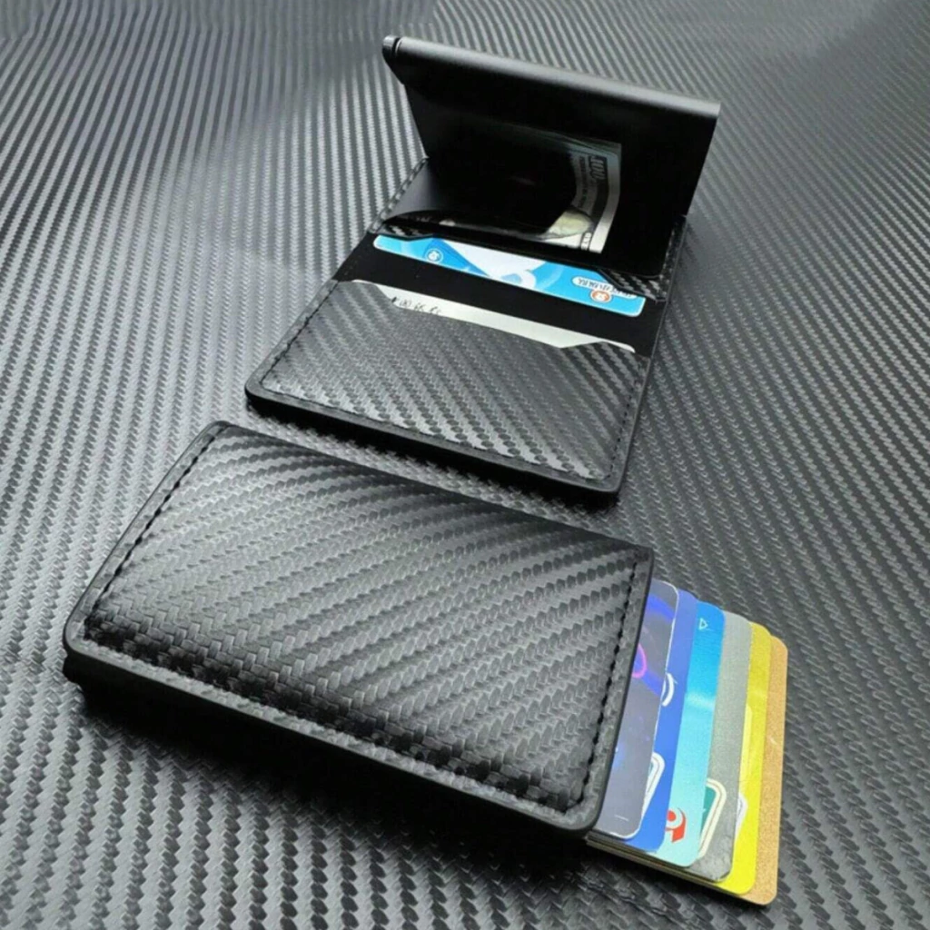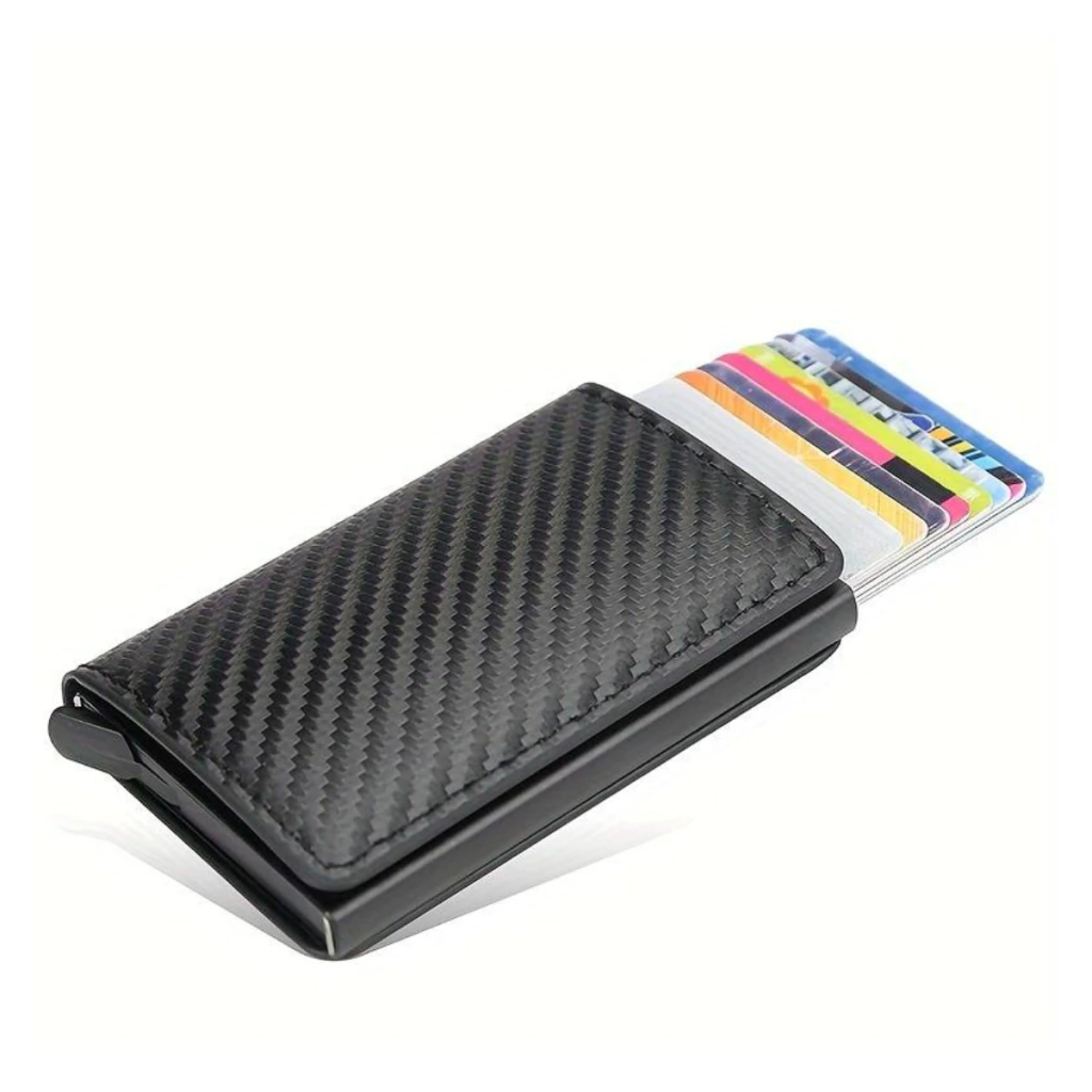 Mantén tus tarjetas organizadas y protegidas con esta billetera compacta de diseño moderno. Su sistema de bloqueo RFID evita escaneos no autorizados, brindando mayor seguridad.