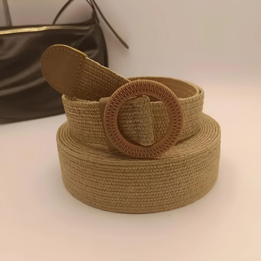 Cinturón Estilo Boho Chic Ancho de Ratán con Hebilla Circular
