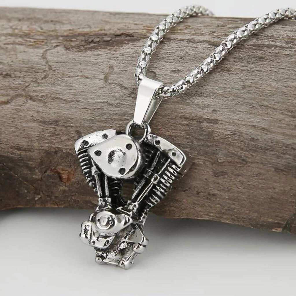 Fabricado en acero quirúrgico, perfecto para los amantes de las motos y quienes buscan un accesorio con estilo rebelde y único.