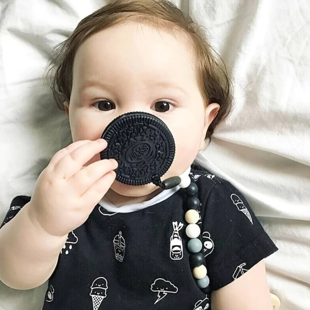 Este divertido mordedor en forma de galleta es ideal para aliviar las molestias de la dentición de tu bebé. Su textura suave y colores llamativos lo convierten en el favorito de los más pequeños.