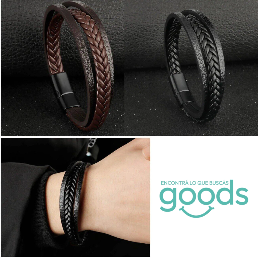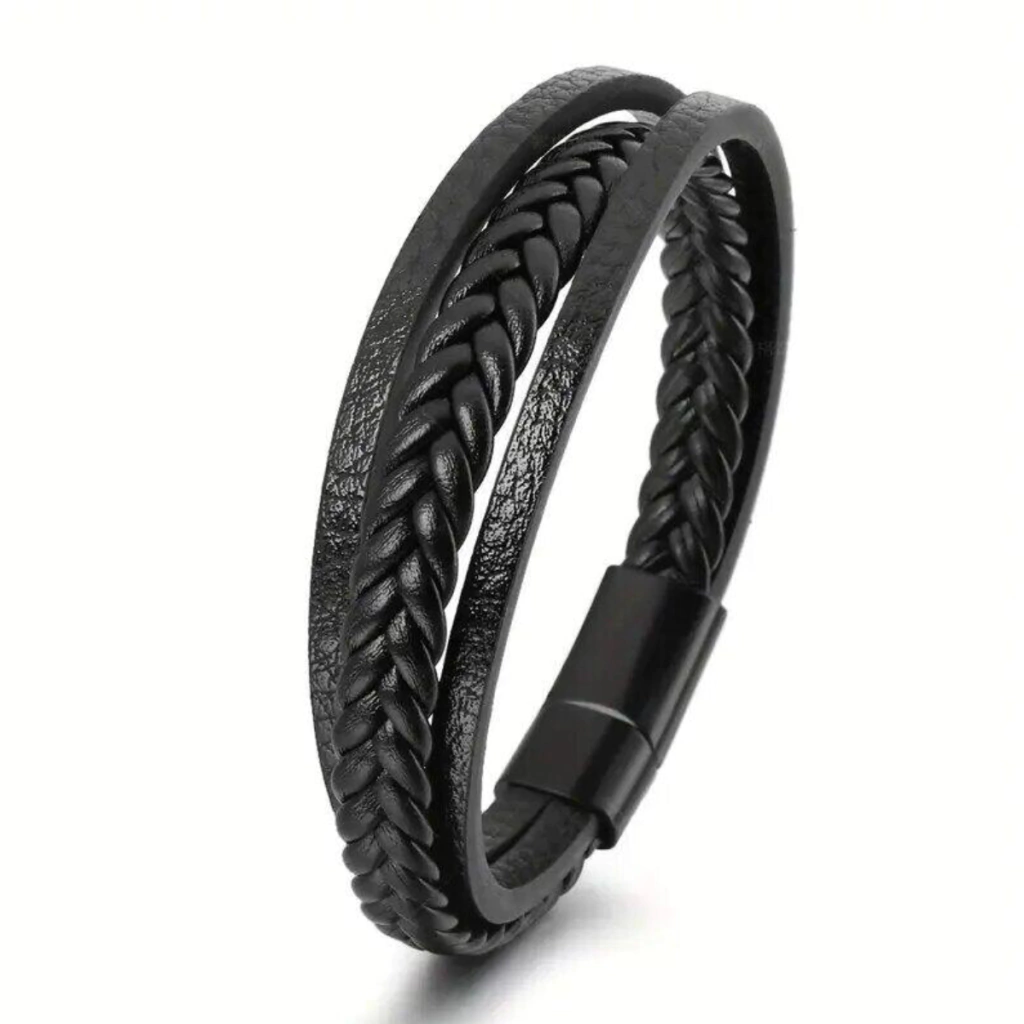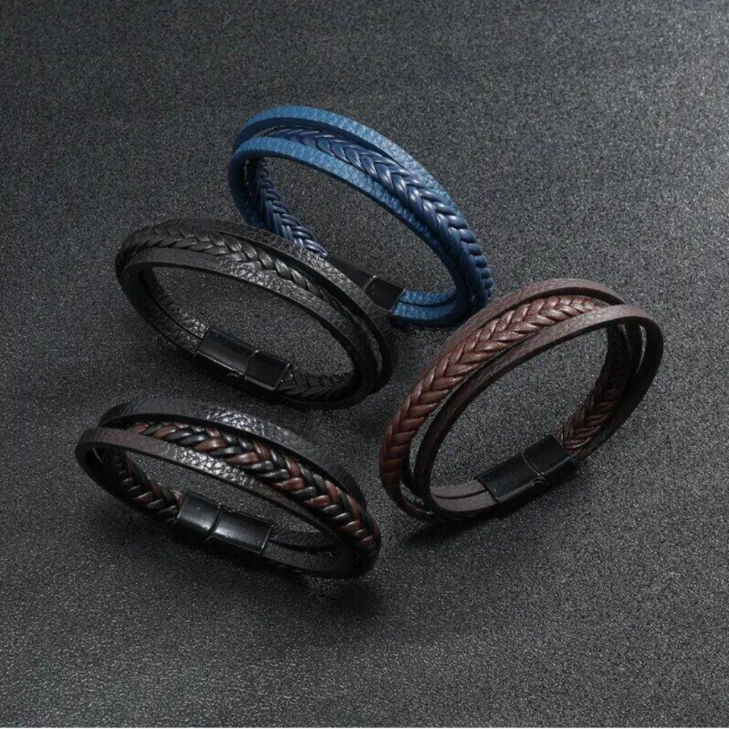 Esta pulsera clásica de cuero 3 en 1 cuenta diseño trenzado y un práctico clip magnético, es perfecta para el uso diario o para ocasiones especiales. Disponible en negro y marrón.