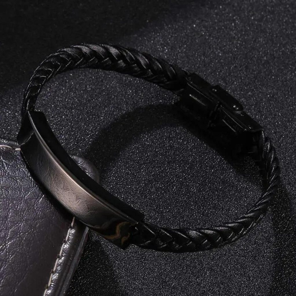 Pulsera de Ecocuero Trenzado y Acero Quirúrgico con Cierre Clip
