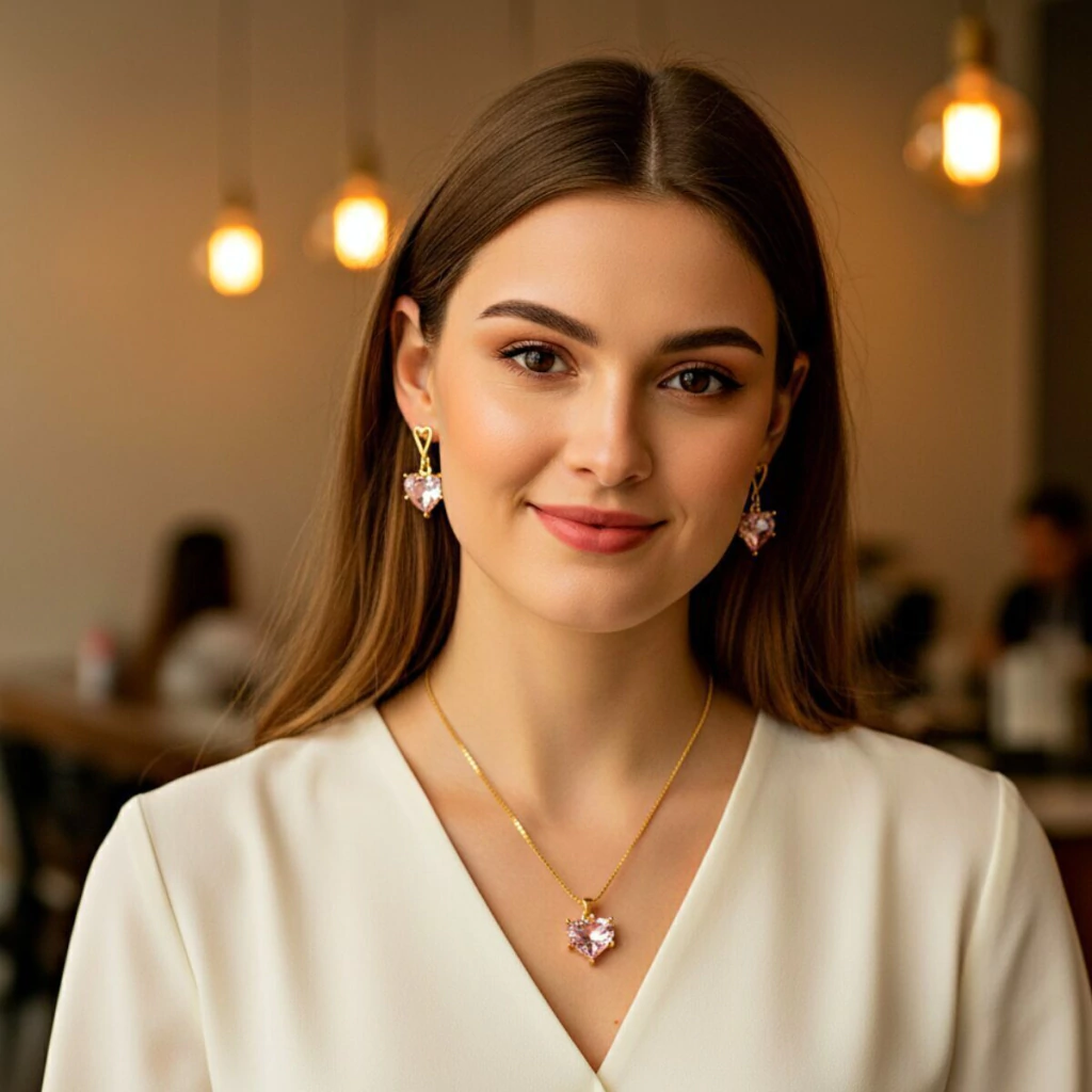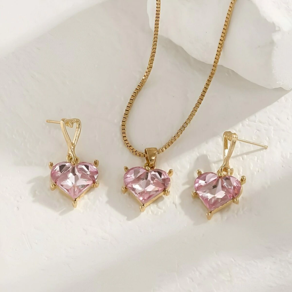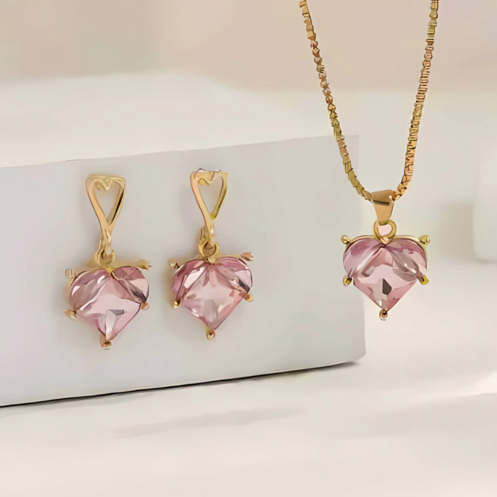 Set Collar y Aros Delicados con Dije de Corazón en Cristal